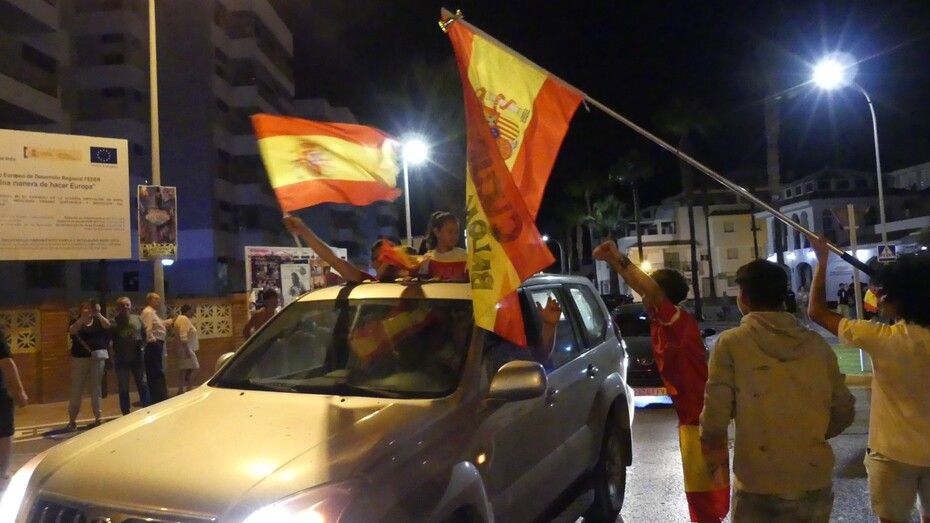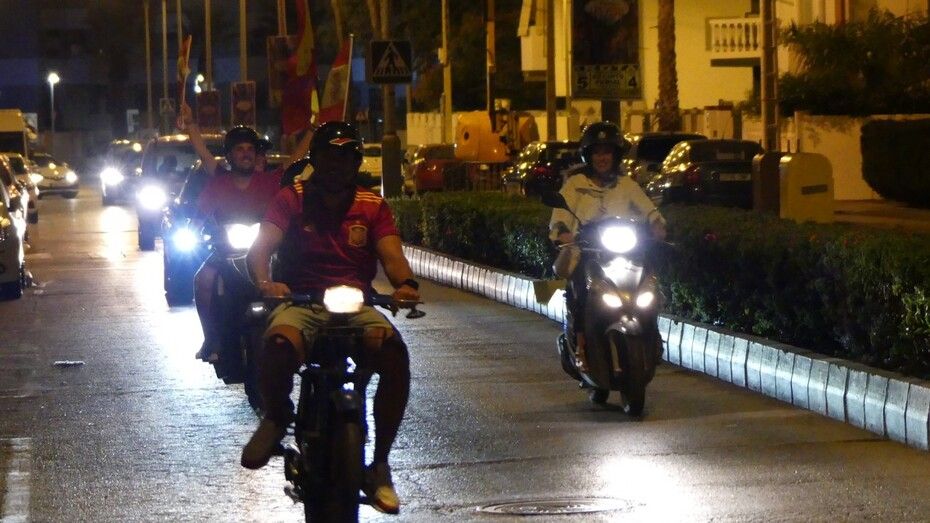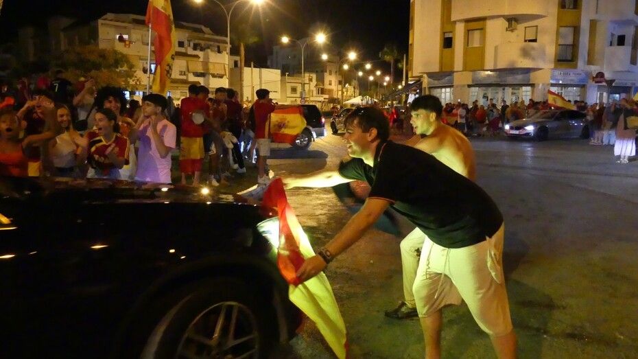 Coches pitando, banderas ondeando por las ventanillas, en las motos y la Policía Local regulando el tapón formado en el nudo de Virgen del Mar han dejado una nueva estampa para el recuerdo. España ha ganado su cuarta Eurocopa y el momento bien merecía el desenfreno vivido durante más de una hora en la fuente.