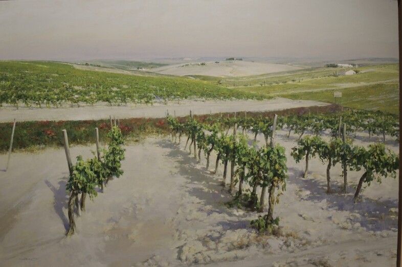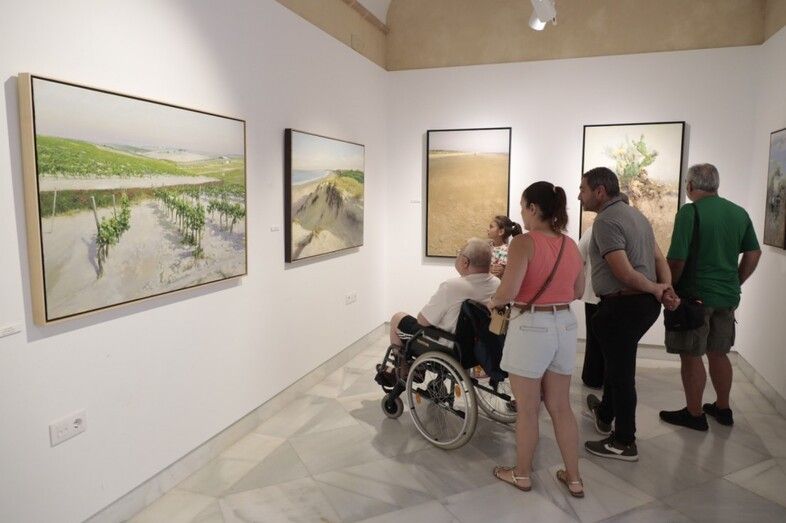 Los reconocibles y populares viñedos de la obra de José Basto centran gran parte de la exposición del pintor jerezano que ayer martes abrió sus puertas en la sala de exposiciones del Palacio Municipal Castillo de Luna. A estas pinturas, se suman a otras creaciones que tienen como protagonistas al mar y la costa roteña, además de otras temáticas que se pueden disfrutar en esta exposición enmarcada en el Verano Cultural 2024, abierta hasta el 30 de julio.