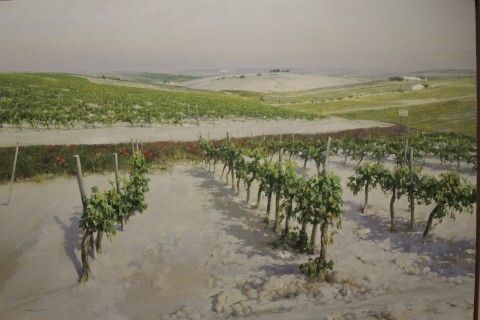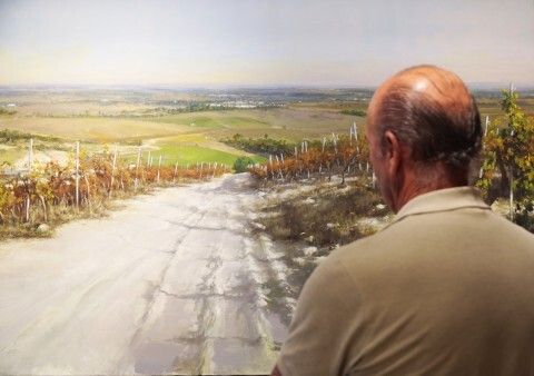 Viñedos y mar en la exposición de José Basto que se puede visitar en el Castillo de Luna
