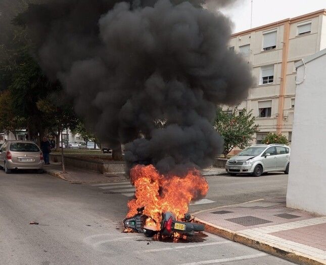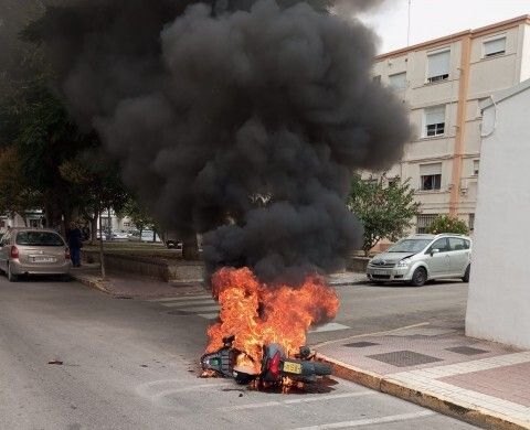 Arde una moto mientras circulaba por la calle Juan Sebastián Elcano