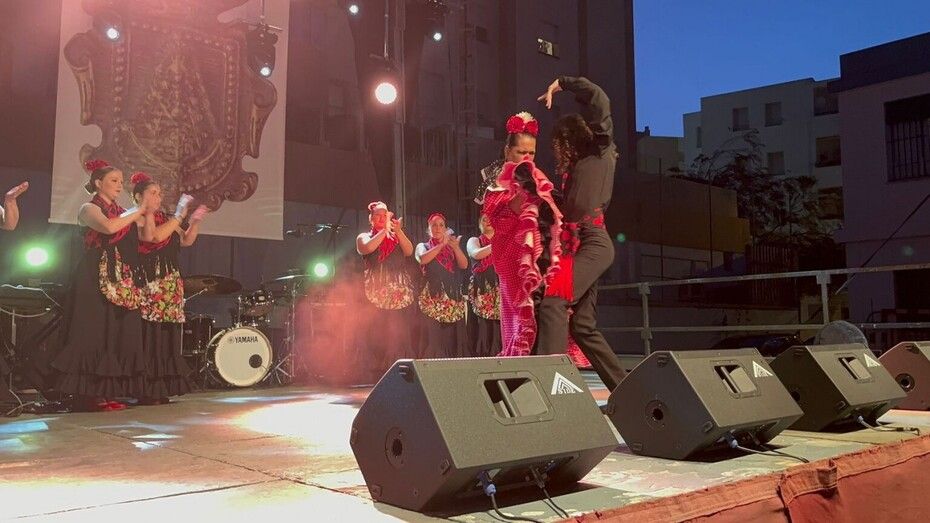 El patio del colegio Maestro Eduardo Lobillo se convirtió anoche en el punto de encuentro perfecto para disfrutar de una noche flamenca y sobre todo, muy rociera, en la que las buenas temperaturas acompañaron e hicieron de la velada una cita que terminó dejando un buen sabor de boca.