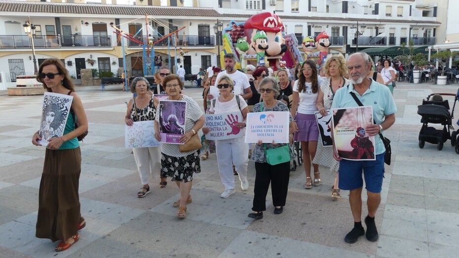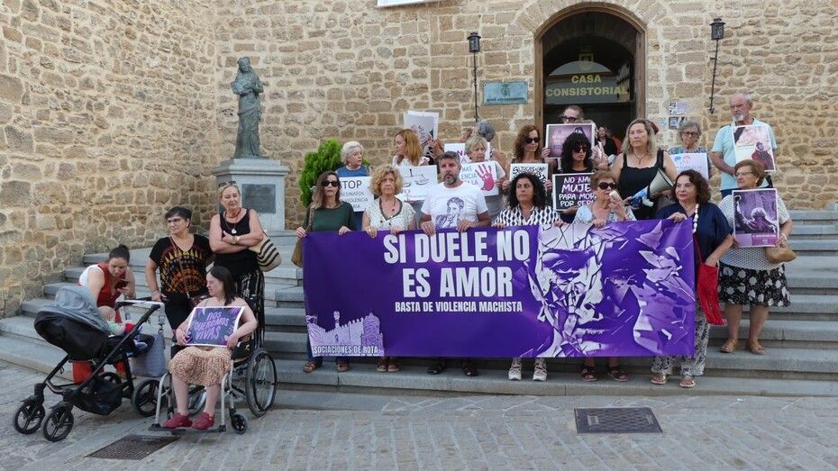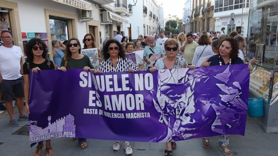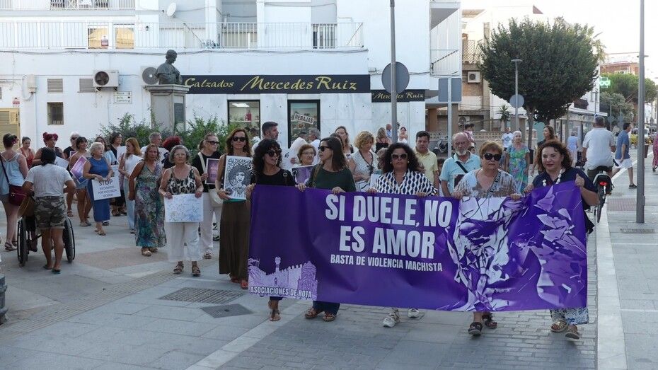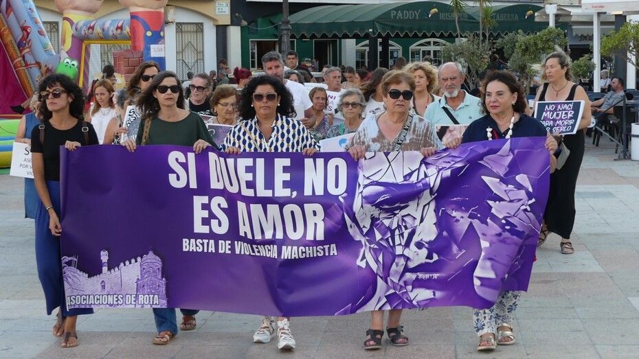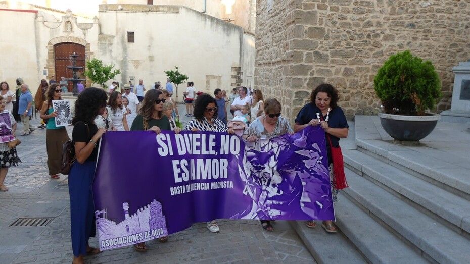 Fieles a la cita que se acordó celebrar cada 25 de mes, han partido desde la plaza de La Cantera con pancartas en la mano y de forma silenciosa representantes de las asociaciones de Feministas de Rota, Arofi, Mujeres ante el Mundo y Ademur, que son las convocantes, además de representantes de partidos políticos como el PSOE con Esther García y Laura Almisas, o Izquierda Unida con el concejal Pedro Pablo Santamaría.