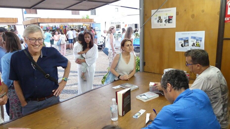 Los autores invitados para la firma de ejemplares en la caseta de la plaza Bartolomé Pérez fueron en la jornada de ayer Antonio Guisado con su obra 'El demonio de Laplace' y Wayne Jamison con 'El poeta que liberó París' y 'Esvásticas en el sur', dando así la oportunidad a sus lectores de establecer un contacto directo con ellos y tener algunas de sus obras firmadas.