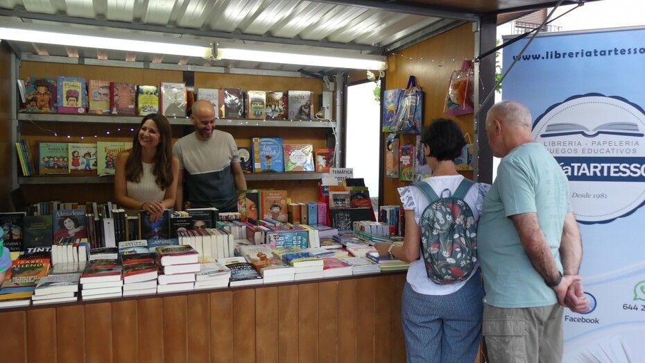 En esta Feria del Libro 'Almudena Grandes', dedicada a la escritora madrileña que tenía a Rota como su pueblo adoptivo, las librerías colaboradoras ofrecen desde sus stands descuentos y ofertas en una gran variedad de obras.