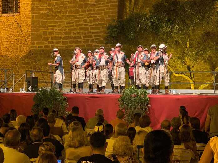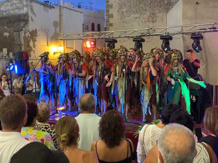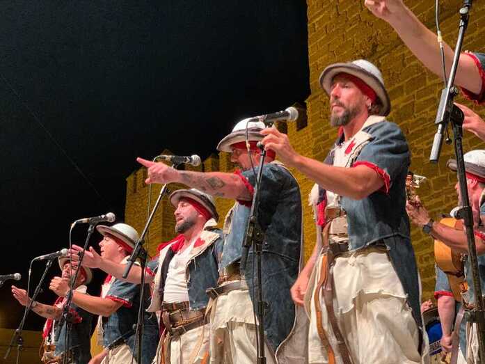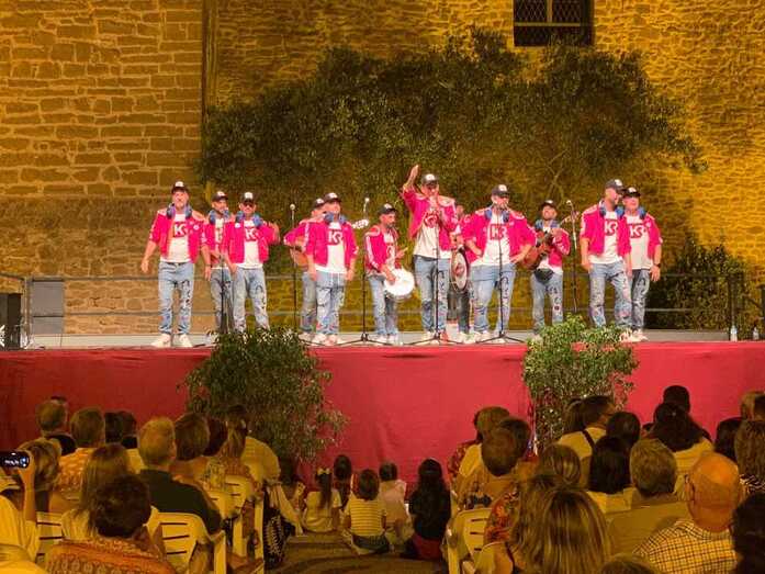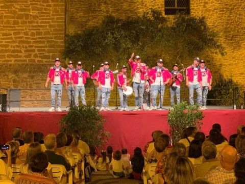 Tras la entrega de los premios del concurso, la actuación de la comparsa 'Los sacrificaos', de Jonathan Pérez, tercer clasificado del COAC 2024, puso el punto y final a las actuaciones en la plaza Bartolomé Pérez.