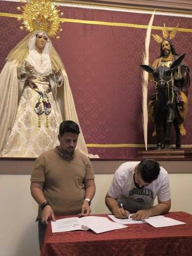 Al acto de la firma del contrato asistieron varios miembros de la Cofradía, quienes acompañaron al escultor Jonathan Alonso, el cual será el encargo de cumplir unos de los sueños más importantes de esta joven Cofradía, que con gran ilusión ha dado el primer paso, para enriquecer aún más su procesión del Domingo de Ramos y que tras varios años de gestación, este proyecto ha cobrado vida, gracias al acuerdo alcanzado con el joven escultor imaginero.