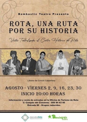 Además de esta visita programada para todos los domingos, este verano Turismo ha ampliado las visitas teatralizadas con una nueva propuesta que permite descubrir otros muchos enclaves de la ciudad, realizando una ruta por la historia de Rota que abarca la plaza mirador de las Almenas, Compás del Convento, la plaza de Andalucía y de España, las calles Gómez Ulla y San Clemente, el Arco de Regla, Caracol, Aire, Salvochea- Méndez Núñez, la plaza Bartolomé Pérez y la parroquia de Nuestra Señora de la O.