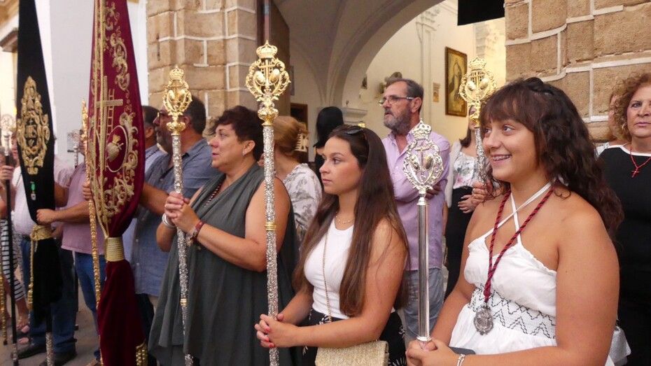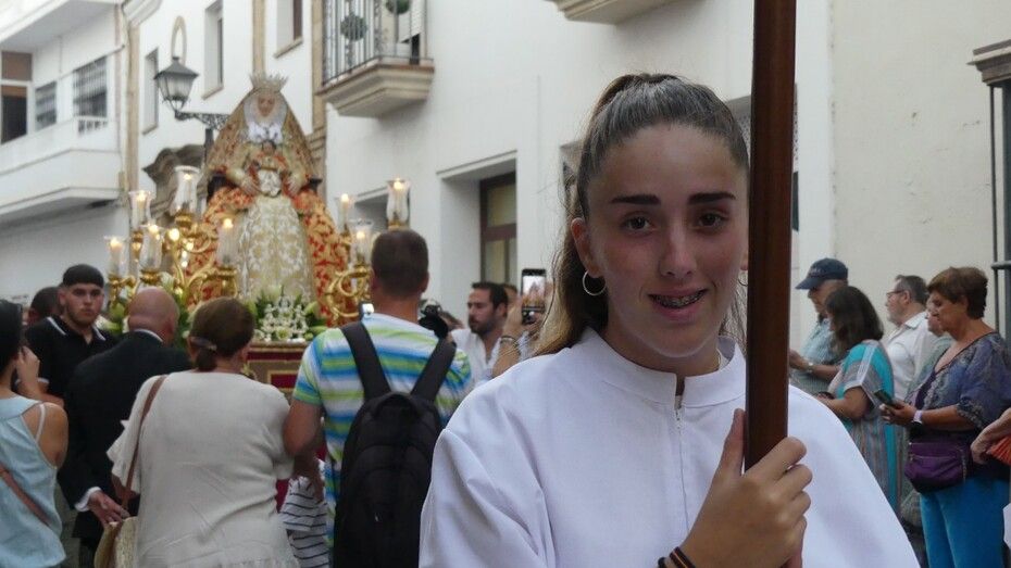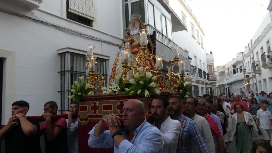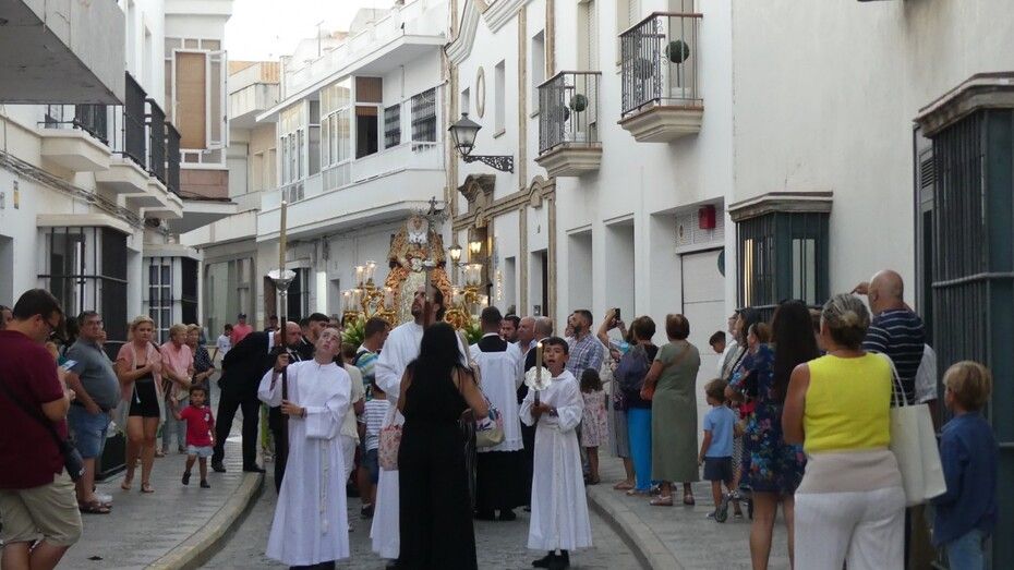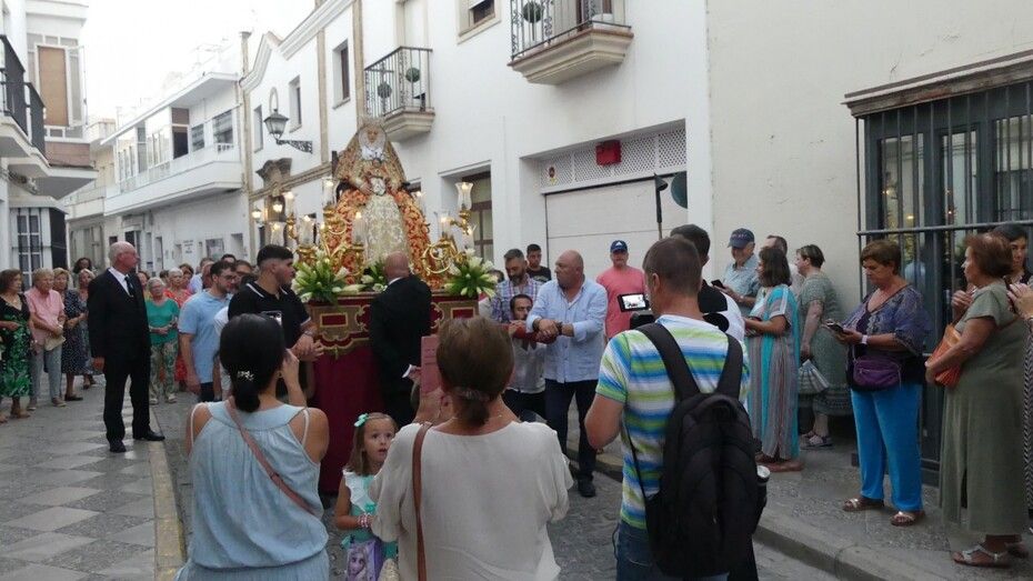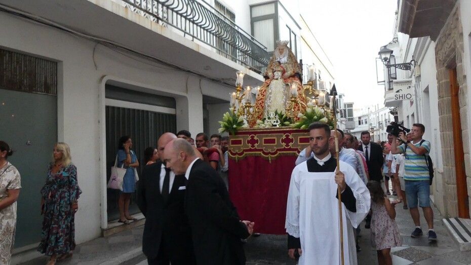 La virgen de los Reyes es patrona de Sevilla y teniendo en cuenta la vinculación de muchos sevillanos con la localidad, en los años 50 y 60, unos veraneantes se unieron para sacarla cuando pasaban sus vacaciones estivales en la villa. Aquella tradición se perdió pero hace siete años que el cura párroco de la O la recuperó y desde 2018, los 14 de agosto en Rota cuentan con la imagen de esta virgen en las calles procesionando. Es una talla del siglo XVI que se recuperó para la parroquia de la O tras varios años fuera de ella. Fue necesario un proceso de restauración del que se encargó el portuense Daniel Herrera Herrera para que hoy luzca en perfectas condiciones.