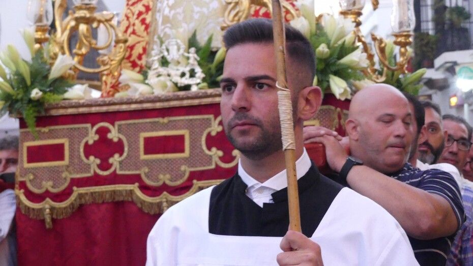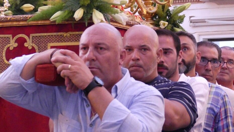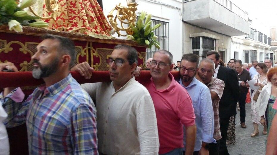 Un poco antes de la hora anunciada, la imagen de la Santísima Virgen de los Reyes salía de la parroquia de Nuestra Señora de la O en una tarde de miércoles previa a la festividad de la Asunción de María que se celebra cada 15 de agosto.