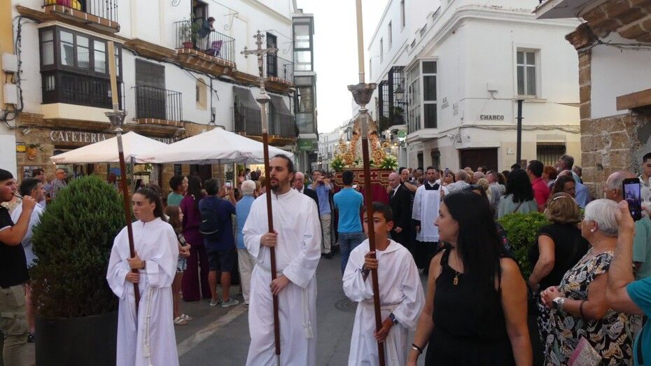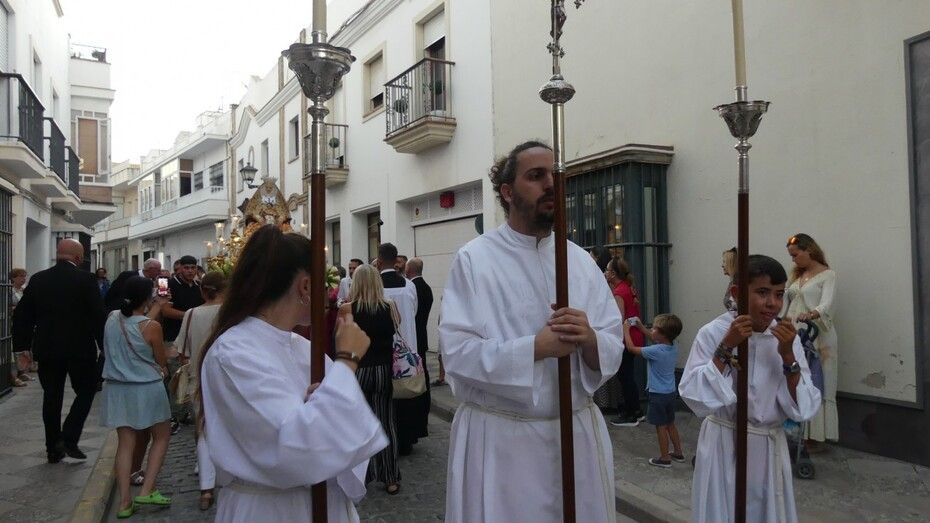 Manteniendo la tradición que se recuperó en 2018 por parte del cura párroco de la O, José Arjona Gil, roteños y visitantes han podido acompañar a esta virgen en su salida de vigilia por las calles del casco histórico de Rota. Cargada en parihuela por devotos que han ido turnándose en el recorrido, y tras una cruz que abría el cortejo María Santísima de los Reyes ha cumplido con su cita arropada por un grupo de fieles que tras ella, iban rezando el rosario, junto al coro de la iglesia de la O.
