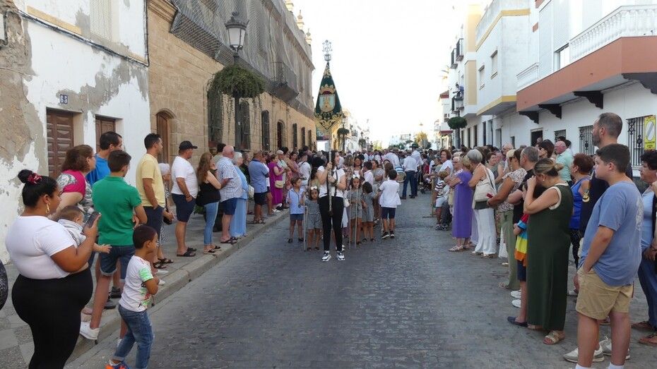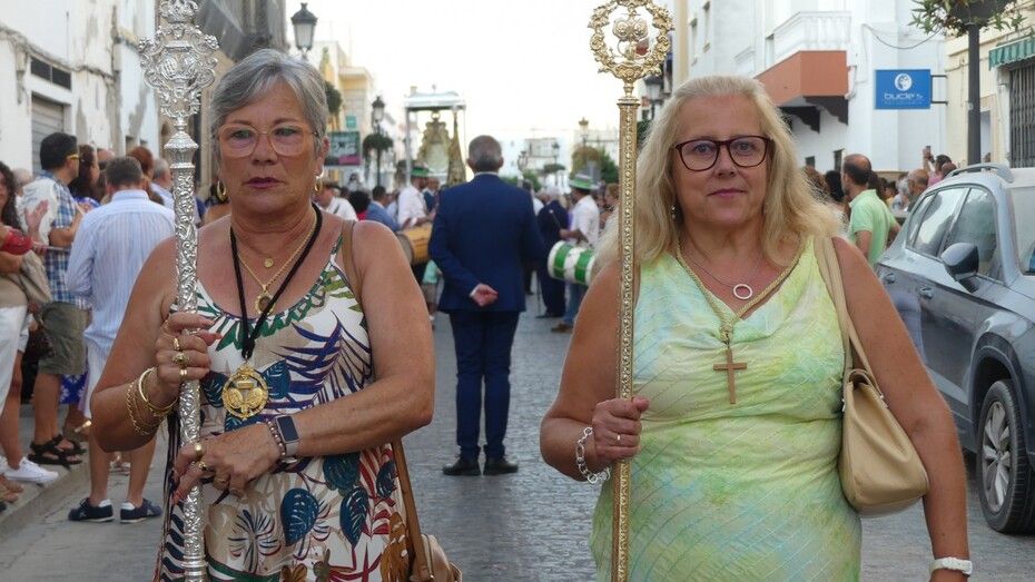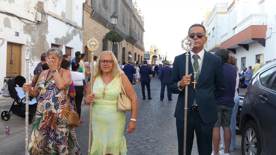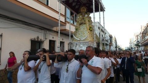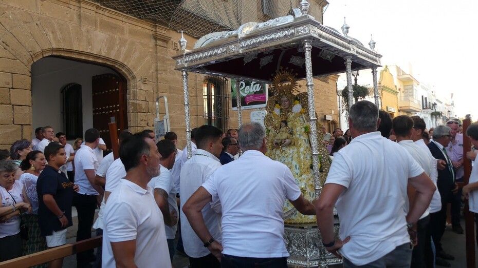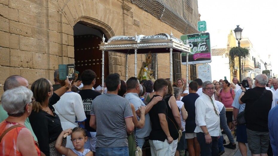Fiel a su cita desde hace once años, ya que los dos de pandemia lo impidieron, la imagen de Nuestra Señora del Rocío ha salido de su templo parroquial para cumplir con la salida procesional que se incluyó en 2012 en los estatutos de la Hermandad del Rocío con el fin de que el día festivo de la Asunción de María en Rota, es decir, cada 15 de agosto, tuviera especial protagonismo el fervor rociero.