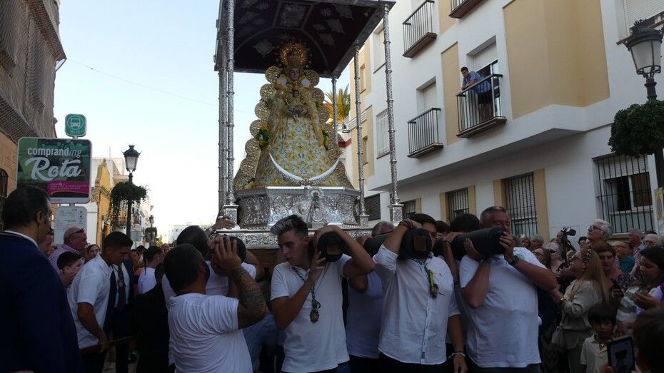 Que esta procesión se celebre en pleno mes de agosto, justo en la semana que puede ser de las más concurridas en cuanto a visitantes, da la oportunidad no solo a los roteños sino a muchos devotos de la virgen del Rocío que pasan sus vacaciones estivales, de disfrutar de su presencia como así está siendo en una tarde noche muy calurosa.