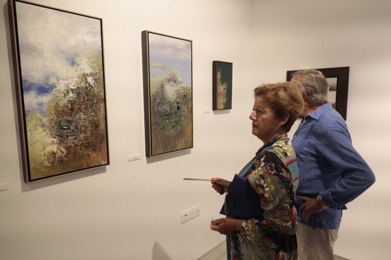 Los asistentes ayer al acto de inauguración pudieron conocer de primera mano algunas de las pinturas expuestas por boca de los propios pintores, que ejercieron de anfitriones.