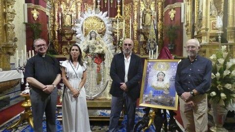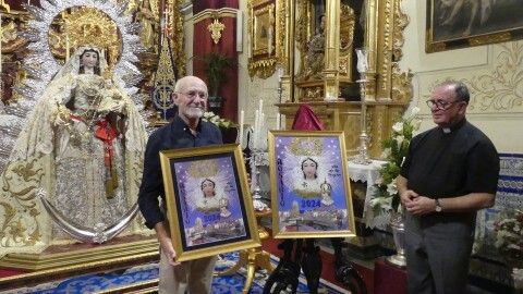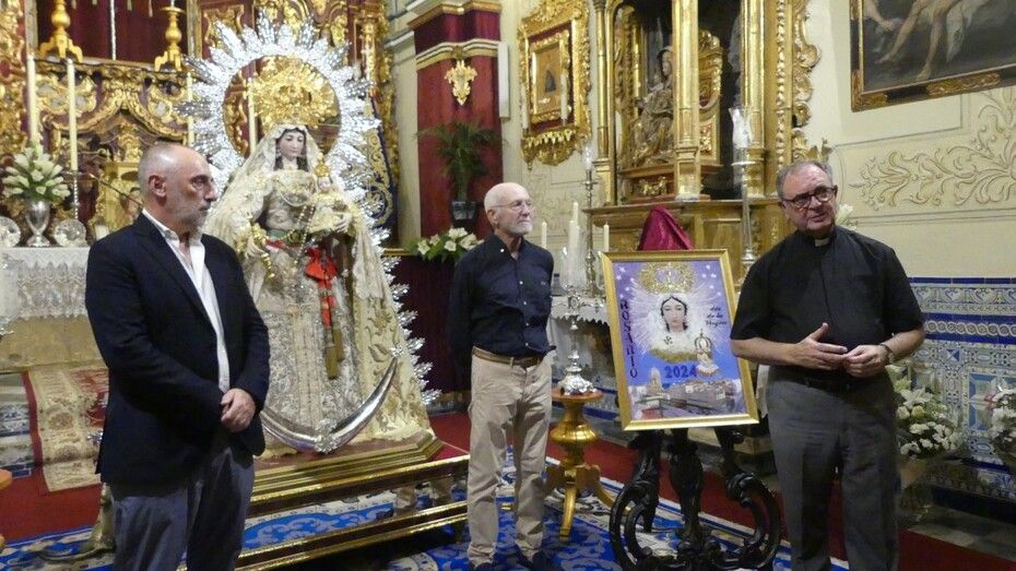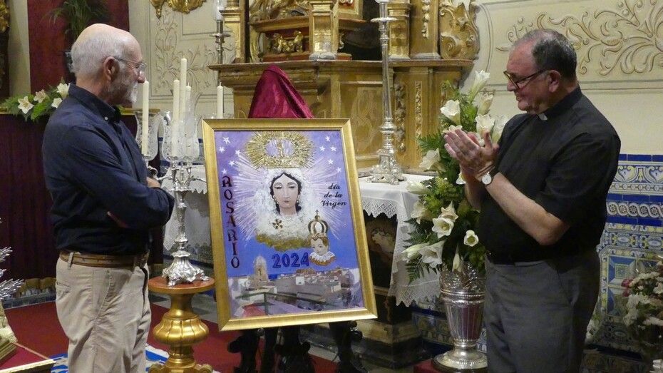 Rota y Rosario están unidos como Antonio Letrán Márquez, que fue elegido por la gestora de la hermandad, ha plasmado en un cartel que hoy se ha descubierto en la capilla de la iglesia de Nuestra Señora de la O, contando con la presencia del director espiritual de la hermandad, José Arjona Gil, representación del Consejo Rector de Hermandades y Cofradías de Rota, algunos cofrades y familia tanto del cartelista como de Manuel Gallero Caballero, que también ha sido presentado oficialmente como pregonero.