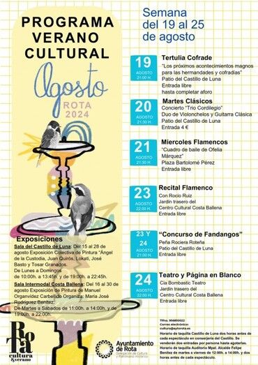 El Verano Cultural sigue una semana más de agosto con nuevas citas culturales que abarcan desde los fandangos al flamenco, pasando por el teatro y otras muchas actividades.
