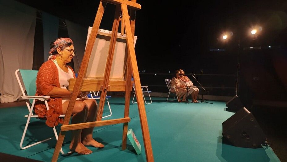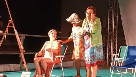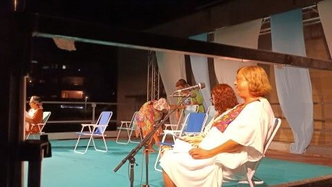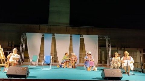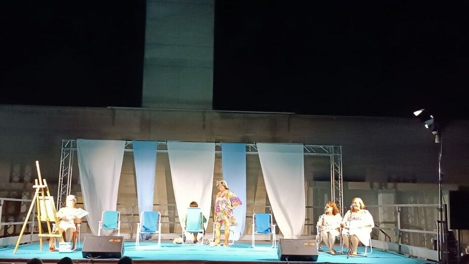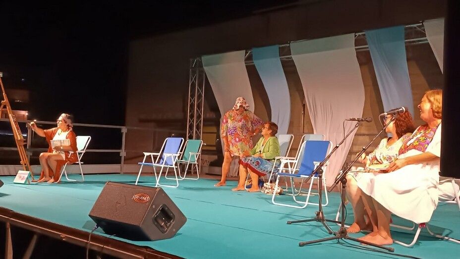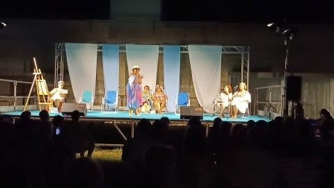 El espectáculo situó a diferentes personajes en un escenario tan conocido en la localidad como la playa, y en particular, la playa de la Costilla, donde se iban mezclando con los textos que la revista literaria había preparado para la ocasión, la puesta en escena de los actores de Bombastic.