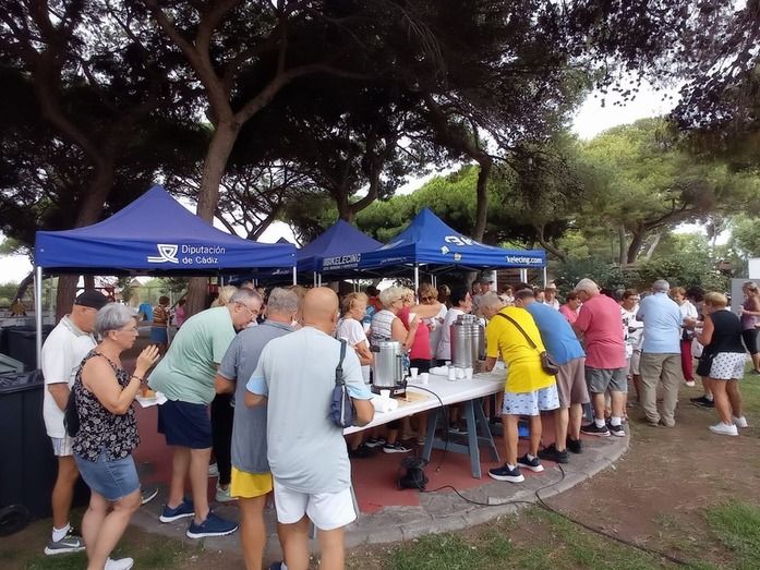 El alcalde de Rota, José Javier Ruiz Arana, acompañado por la delegada de Deportes, Luisa Fernández y el delegado de Playas, José Antonio Medina, han querido compartir con los participantes esta convivencia de clausura en la que han agradecido a todos los usuarios la confianza que un verano más han depositado en esta actividad, que es pionero y referente en el panorama del ejercicio adaptado con controles médicos.