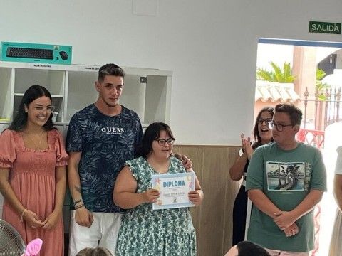 Esta mañana, la escuela de verano de la Asociación de Personas con Discapacidad de Rota ha realizado un acto de clausura, en el que han participado tanto los familiares, como los asistentes a la escuela y los monitores que les han acompañado durante este tiempo. Esta escuela de verano ha vuelto durante este período estival, tras haber cesado su actividad por la pandemia COVID-19.