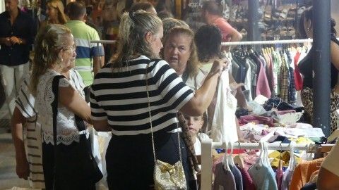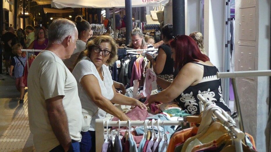 Desde las ocho y media de la tarde, comenzaba el trasiego de público por las dos calles comerciales principales, Charco y Castelar, reuniendo en torno a algunas mesas y stands a muchos curiosos y sobre todo, gente que estaba dispuesta a no dejar pasar la oportunidad que suponía obtener artículos, especialmente textil, calzado o complementos, a descuentos de hasta el 60%. Y es que la delegación de Comercio, que impulsaba la idea junto a un grupo de comerciantes, planteaba dos opciones: o tener descuentos mínimos del 50% o precios cerrados desde 1 euro, así se garantizaba el atractivo necesario para atraer a potenciales clientes.