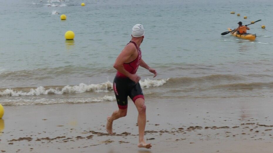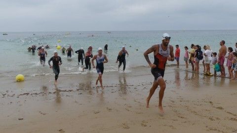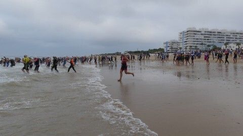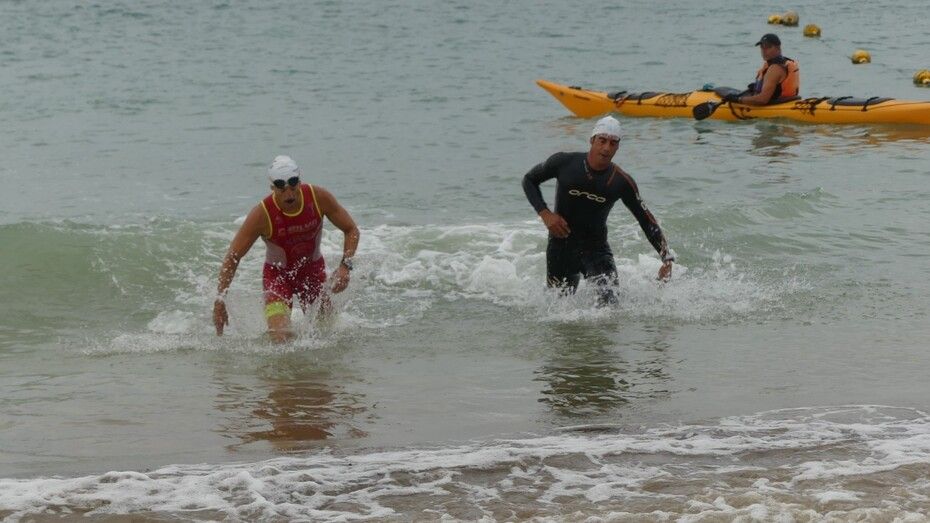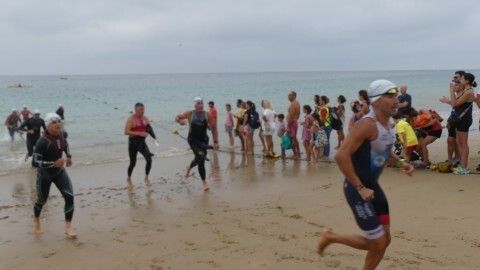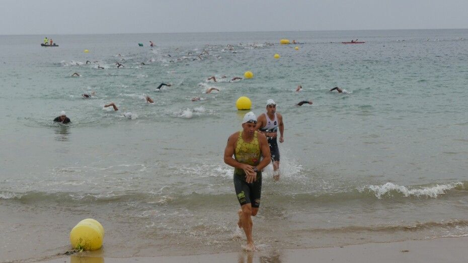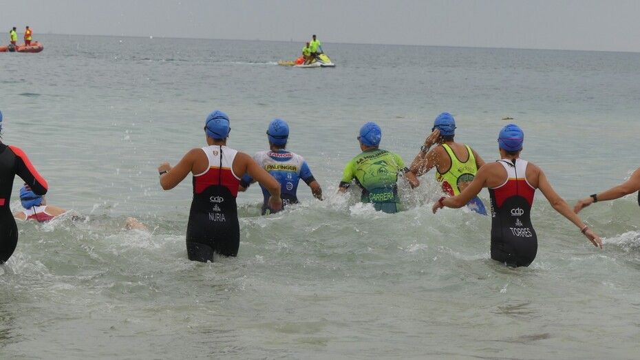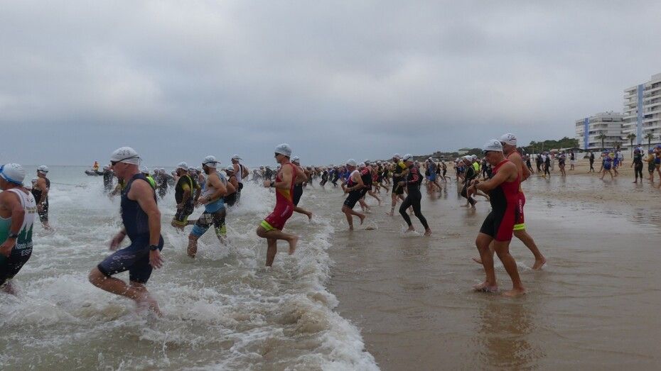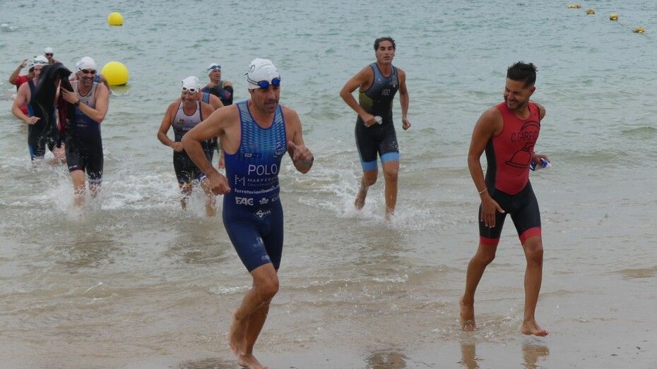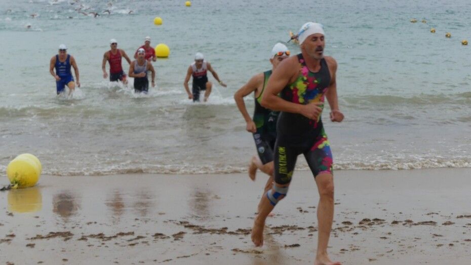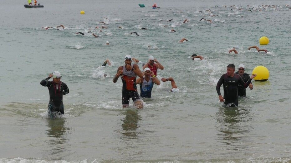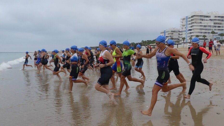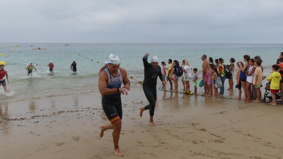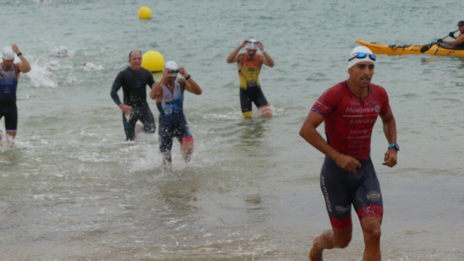 La playa de la Costilla ha sido el primer escenario en el que los participantes tenían que medirse recorriendo los primeros 750 metros a nado, hasta llegar a la altura de la bajada de Jesús Nazareno, donde el pasillo de público animaba a los que iban saliendo del agua y se enfundaban las deportivas y el casco para subir a la bicicleta. Ha sido esta parte del circuito la más larga, al comprender 18 kilómetros de recorrido que han discurrido por la avenida San Fernando al completo, llegando hasta la Base Naval y dando la oportunidad a los triatletas de entrar en el recinto militar y con ello, tener unas vistas distintas al recorrido urbano por Rota. Ha habido varios puntos en los que los ciudadanos, muchos de ellos familiares, amigos o compañeros de club, han animado a los triatletas en un tramo en el que ha habido alguna caída aunque sin consecuencias.
