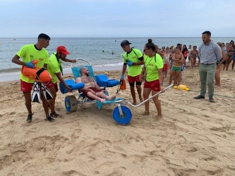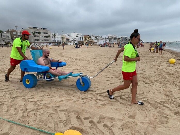 El ejercicio de salvamento y socorrismo se realizó en base a un simulacro con una persona con movilidad reducida, que solicita en la playa de la Costilla un baño asistido y sufre una parada cardíaca durante el citado baño, siendo atendidos por Protección Civil y reanimado por el DUE.