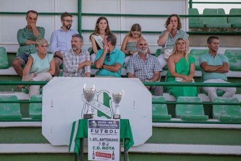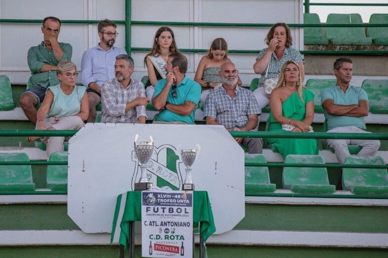 En la tarde de ayer jueves se disputó en el estadio 'Antonio Puyana Pazos - Monago' el partido del XLVIII Trofeo Urta que enfrentó al CD Rota y al Club Atlético Antoniano. Un encuentro marcado por la historia de este decano trofeo que finalmente se llevaron los de Lebrija tras imponerse por 2 goles al club verderón.