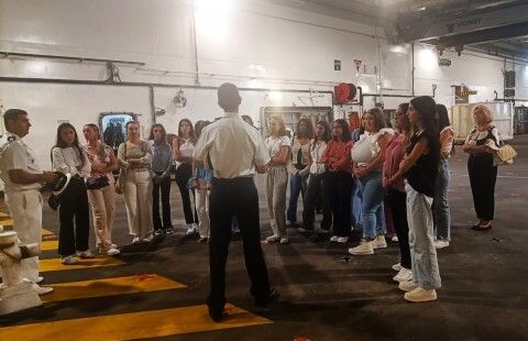 La visita, que forma parte del programa oficial y está más que consolidada desde hace años, ha sido posible una vez más gracias a la invitación de la Marina Española y la Marina Americana, que permiten que las jóvenes accedan al recinto militar para conocer parte de sus instalaciones y equipamiento.