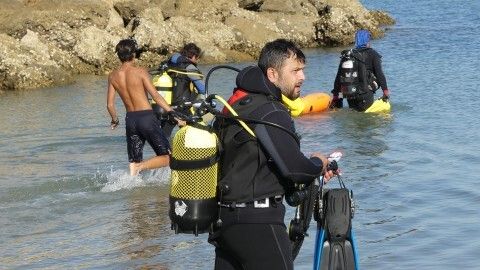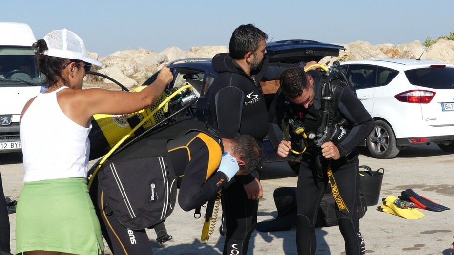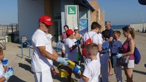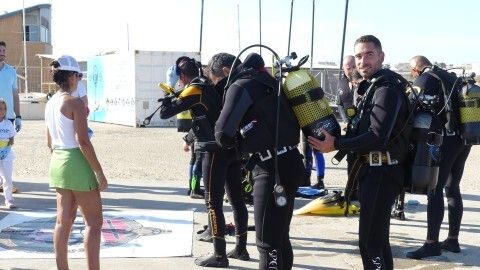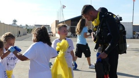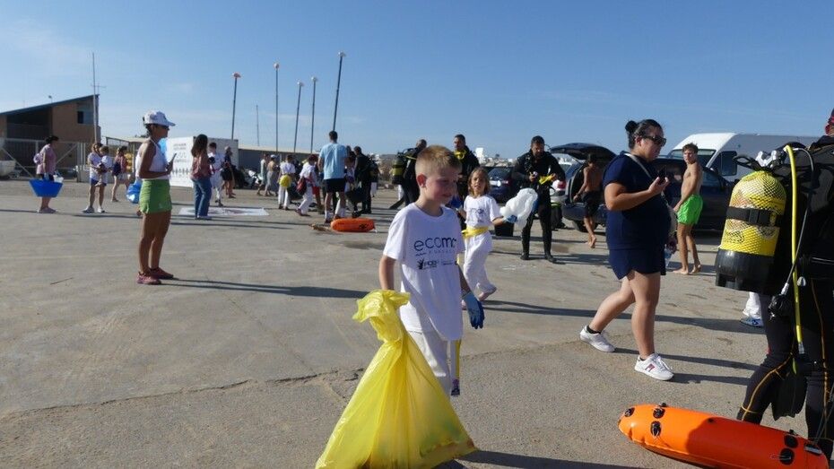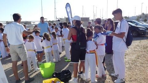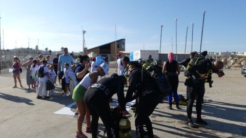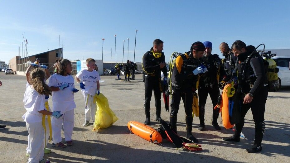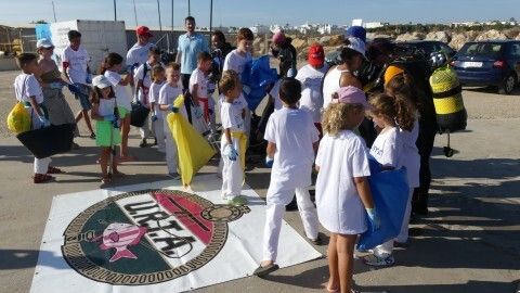 La actividad se ha visto completada con la inmersión que han hecho ocho buzos, gracias a la colaboración del Club Náutico URTA, que se ha mostrado predispuesto a hacer una demostración a los chicos con todo su equipo. Los buzos se han sumergido en el fondo del mar para demostrar a los menores que aunque no esté a la vista, ahí también llega la basura, y han sacado algunos envases.