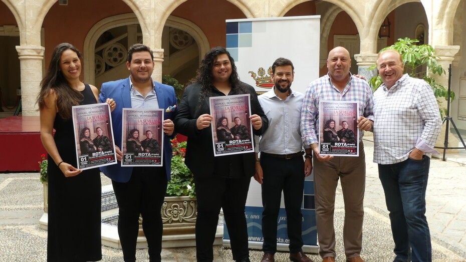Esta mañana, se ha llevado a cabo la presentación de 'La sevillana y la copla', una cita que organiza el Consejo Local de Hermandades y Cofradías, pero en la que ha tenido mucho que ver Miguel Moyares que hoy, junto al presidente del consejo, José Manuel Sánchez Peña, el delegado del Mayor, Jesús López Verano, los dos cantantes y la bailaora flamenca Ofelia Márquez, han dado los detalles de un espectáculo que se estrenará en noviembre en Sevilla, pero que recalará directamente en Rota a los pocos días.