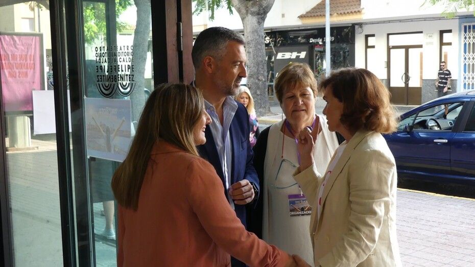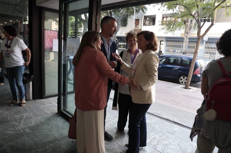 Luchar contra la cosificación, por los derechos humanos, por salarios dignos, por las condiciones de la maternidad y por romper barreras y techos es tarea de todos, insistía Carmen Calvo en unas declaraciones que después ampliaría en similares términos durante su charla en el interior del auditorio.