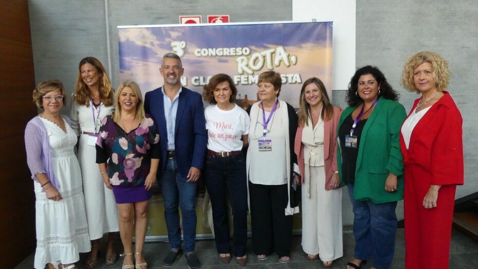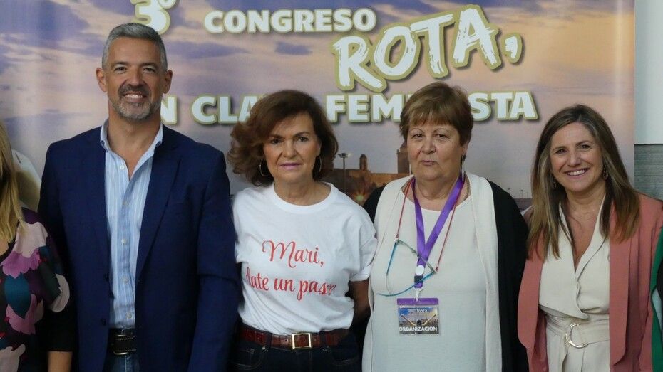 Ha sido en el acto oficial de inauguración, previo a la intervención de la exvicepresidenta, donde la presidenta de la Asociación de Mujeres Feministas de Rota, Carmen Lanagrán, organizadora del evento, y el alcalde de Rota, Javier Ruiz, que a través del Ayuntamiento ha prestado apoyo para el impulso de este congreso, han dado las gracias no solo a Carmen Calvo por su presencia en esta tercera edición sino a todas las mujeres y hombres que se han sumado para participar y escuchar los debates propuestos.