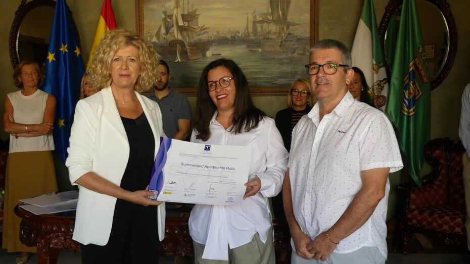 En esta ocasión, se suman al Sistema Integral de Calidad Turística (SICTED) Summerland Apartments Rota, Playa Ballena Spa Hotel, Hostal Boutique 'La Española' y Apartamentos turísticos 'La Baílla'. Cada uno de sus representantes ha recogido de manos de la delegada municipal la distinción que podrán lucir orgullosos como ya lo hacen otros tantos negocios locales que han renovado la distinción que ya consiguieron en su día y que son Hotel Caribe, Grupo HACE con los hoteles Duque de Nájera y Playa de la Luz y los restaurantes 'El Embarcadero' y 'La Gaviota' así como el chiringuito 'Azúcar de Cuba'.