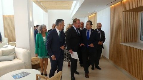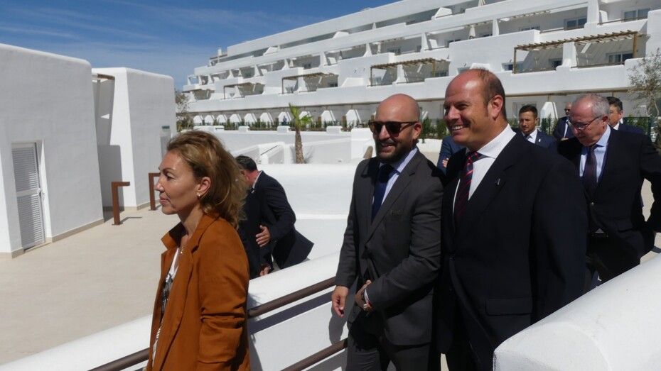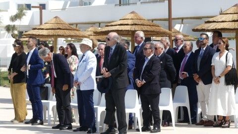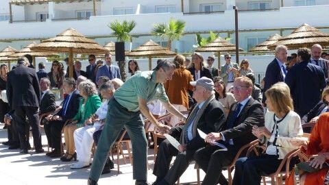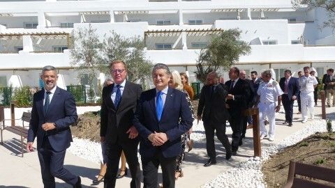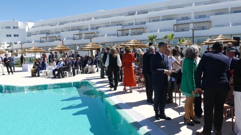 De igual forma, se descubrió una placa conmemorativa en la entrada del edificio, situado en la avenida Jan De Clerck, y se inició una visita por algunos de los apartamentos mientras el resto de invitados disfrutó de un aperitivo en una de las terrazas con espectaculares vistas a los pinares y Punta Candor.