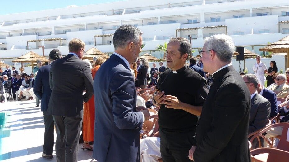 Tras el acto de palabras, el padre Ángel, acompañado por el párroco de la iglesia de la O, Santiago Gassín, bendijeron este nuevo alojamiento turístico, dando paso al corte de cinta oficial y a la firma de las autoridades en el libro de honor del Punta Candor Suite.