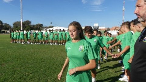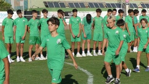 El equipo pitufo, el prebenjamín, los dos benjamines, los tres equipos alevines, los tres infantiles, el equipo cadete, los dos juveniles y el senior han recibido los ánimos de este inicio de temporada en un acto en el que también ha estado la delegada de Deportes, Luisa Fernández.