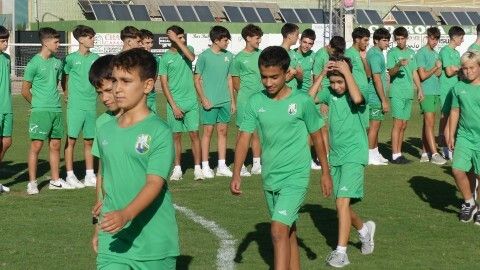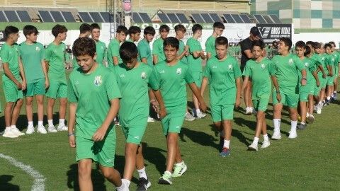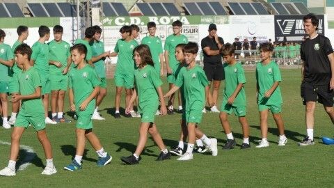 Un total de 250 niños forman parte de la cantera entre los 15 equipos que hoy han saltado al césped del 'Monago' aplaudidos por familiares y aficionados que han llenado las gradas del campo que el presidente Guillermo Agra espera ver así todos los domingos para arropar al primer equipo.