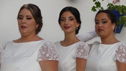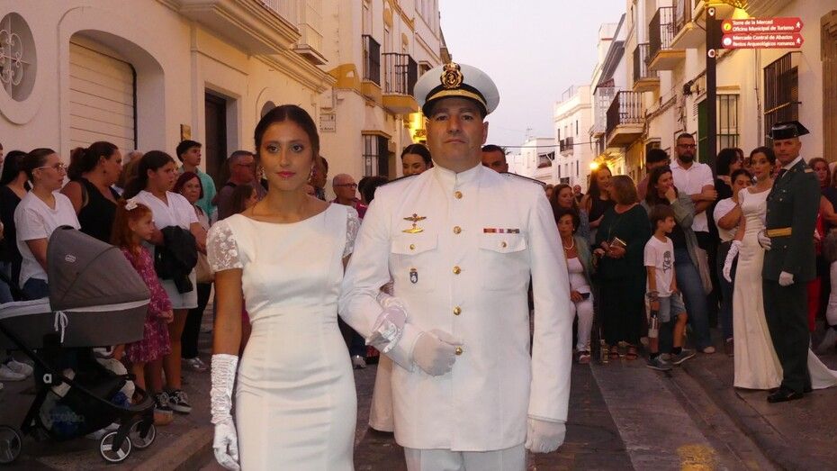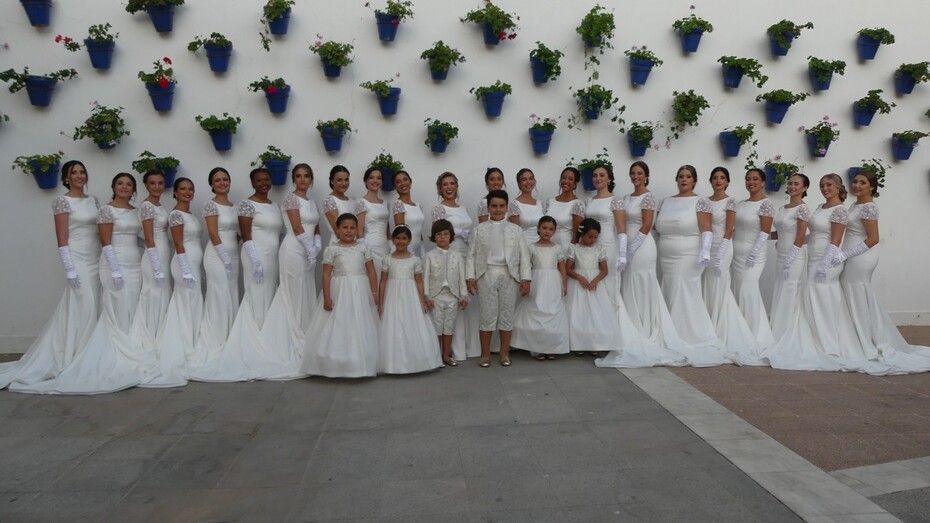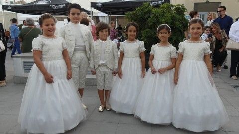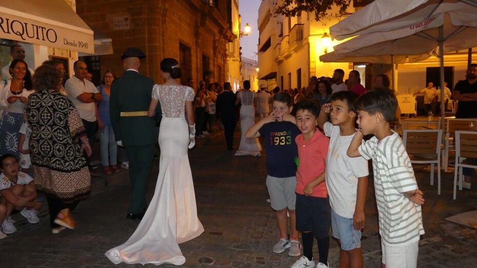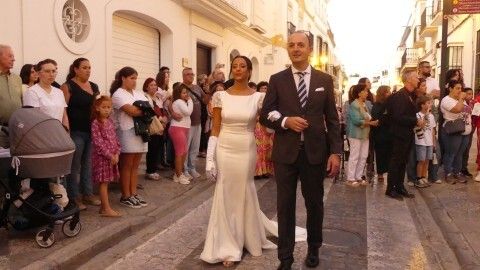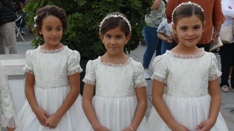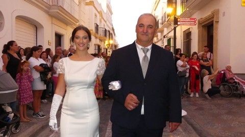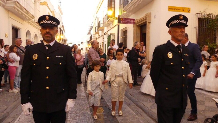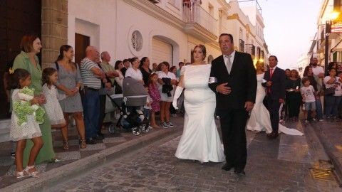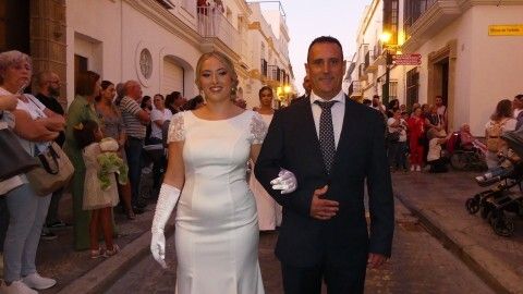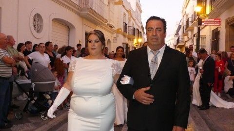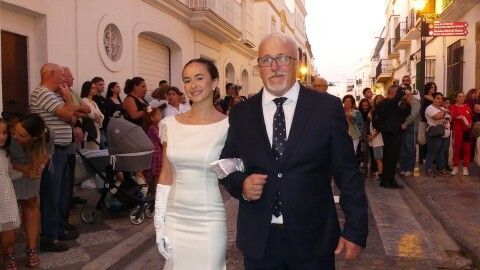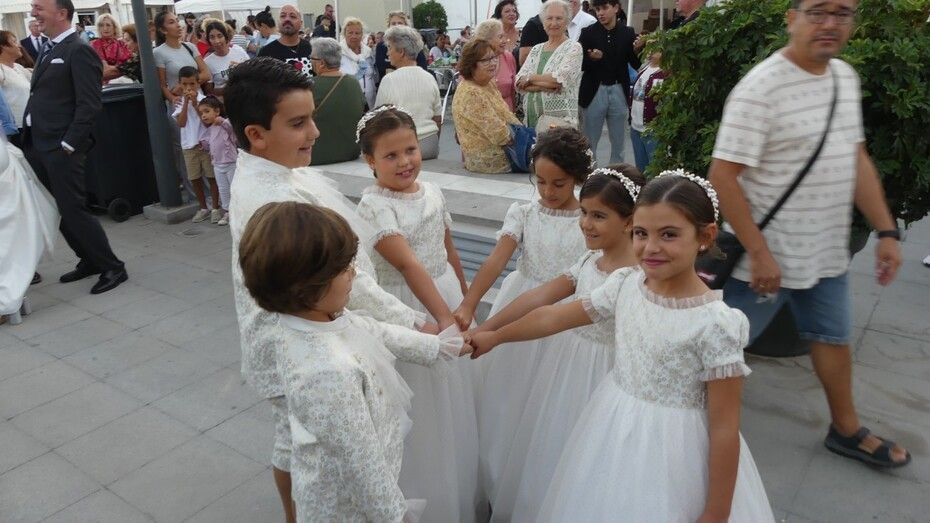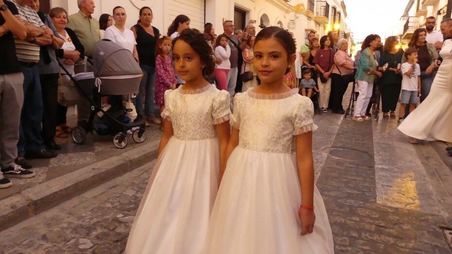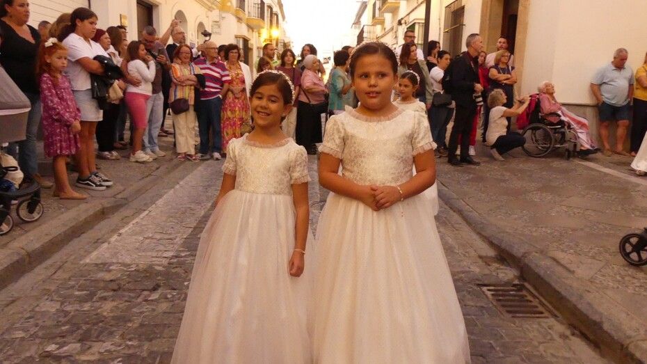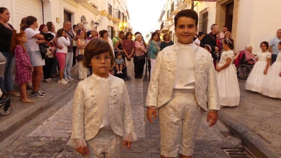 Todas lucían un vestido blanco, con manga corta y espalda de encaje y junto a ellas, los seis pajes, dos niños y cuatro niñas, abrían un cortejo del que muchos roteños han disfrutado a pie de calle llenando las calles del centro por las que han pasado.