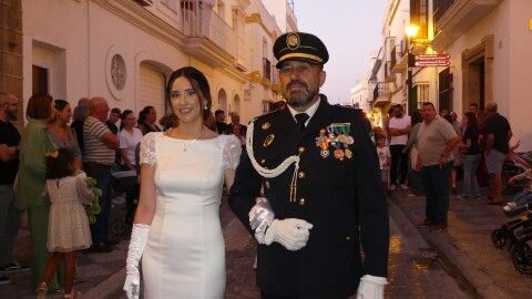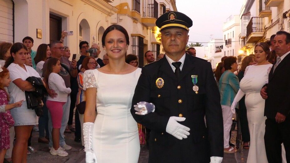 Aplausos y emoción en la joven representante del Club de Funcionarios de la Policía Local de Rota, que recibía su banda de honor y corona por parte de la máxima autoridad local. Además, y como es habitual, al diseño del traje que lucen todas, se le añadía en esta ocasión otros atributos para destacarla del resto de su corte de honor, que la delegada de Fiestas, Esther García, se encargó de colocar, así como fijar la corona diseñada y donada por la empresaria María Eugenia Rodríguez Jaén.
