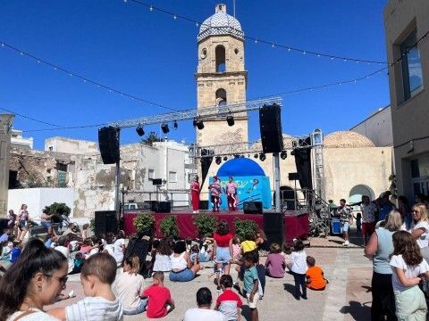 Pese a que el calor se ha notado excesivamente en esta plaza sin apenas sombra, la actuación ha animado a los niños que se han acercado hasta la plaza para divertirse donde desde anoche, comenzaron las actuaciones.