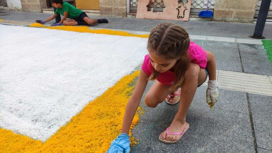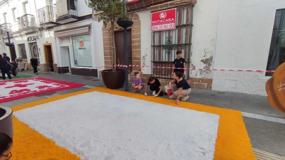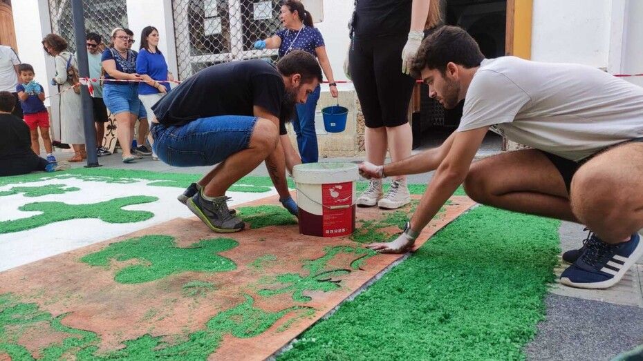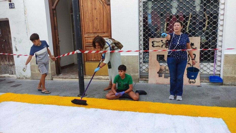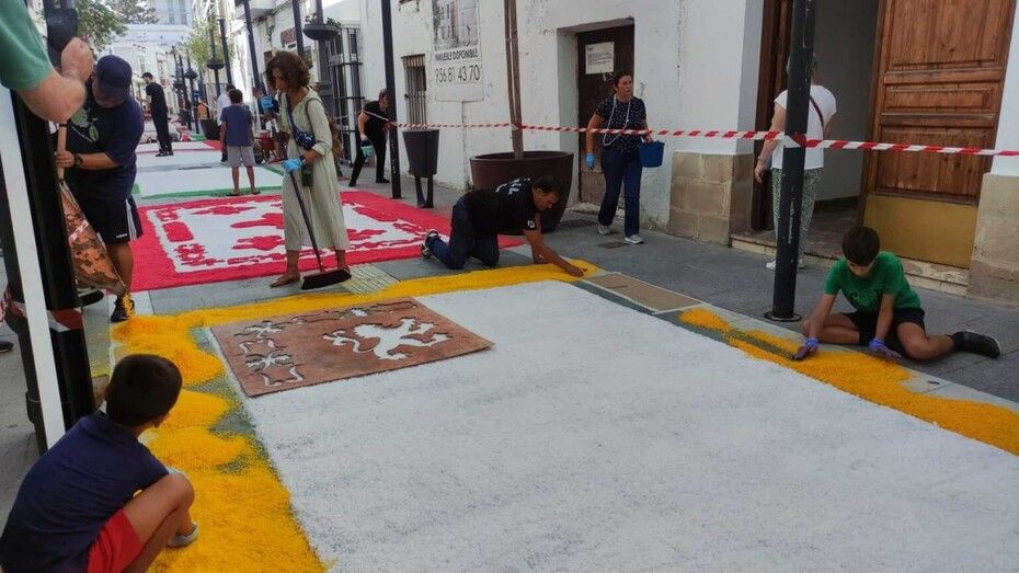 En la tarde de este mismo domingo quedará terminada la alfombra de sal, por lo que se ruega a los ciudadanos que respeten el espacio acotado y decorado para no estropearlo y que pueda estar intacto para la tarde de este lunes, 7 de octubre, día del Rosario.