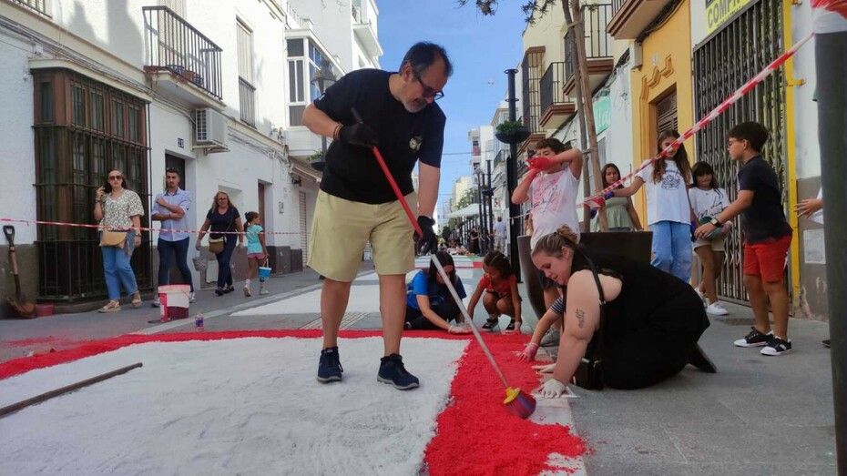 La alfombra de sal para la virgen del Rosario en sus fiestas patronales era una iniciativa que se perdió, que se recuperó con los años en 2018 y 2019, y que la pandemia volvió a interrumpir. En este 2024 se retoma con el único objetivo de aportar un granito de arena a que la procesión de la patrona de Rota luzca aún más a su paso por esta zona. Además, está permitiendo que sean muchos los niños que se hayan involucrado y estén disfrutando de esta actividad.