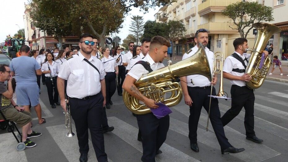La banda municipal de música 'Maestro Enrique Galán' abría el cortejo que a las 7 de la la tarde partía desde la explanada del mercadillo y hasta pasadas las 9.30 de la noche ha recorrido calles y avenidas de Rota en una tarde de domingo que es no laborable para la gran mayoría y que además, cuenta con el plus añadido de que este lunes, 7 de octubre, es festivo local, con motivo del día de la patrona. Así que esta noche todavía se puede prolongar y para ello, desde el Ayuntamiento de Rota está previsto a las 22.30 horas el concierto de Shikha y a las 23.30 horas la orquesta 'Blue sound' terminará de rematar la jornada, ambas en la plaza de la Merced.