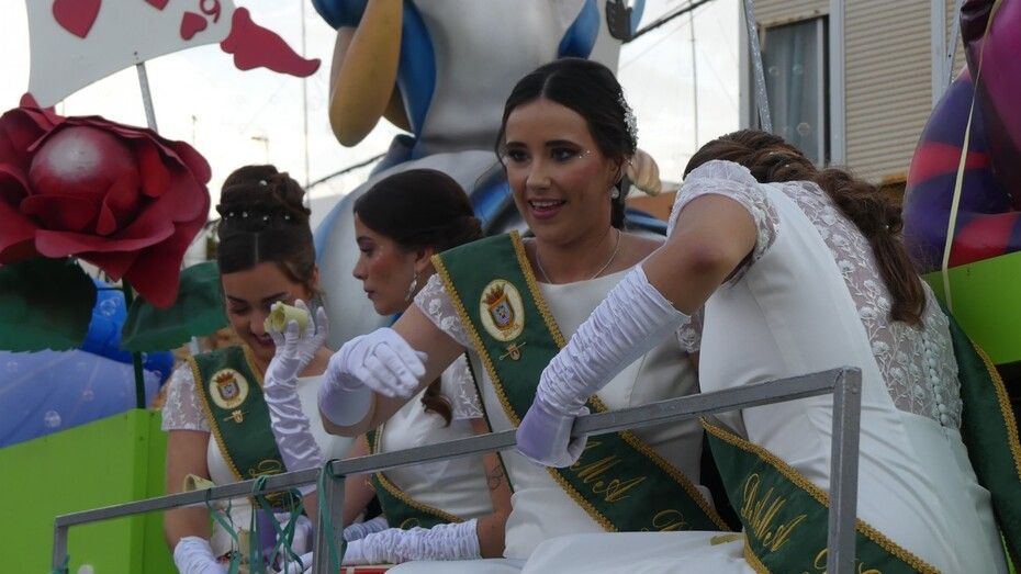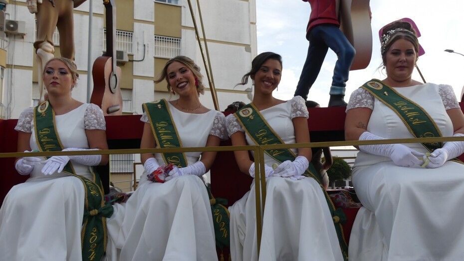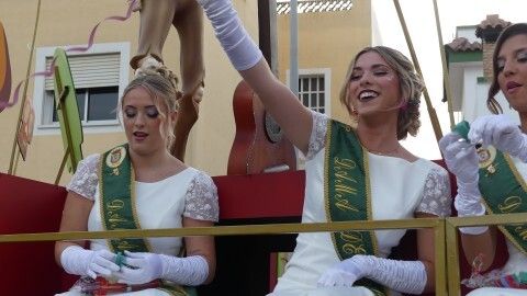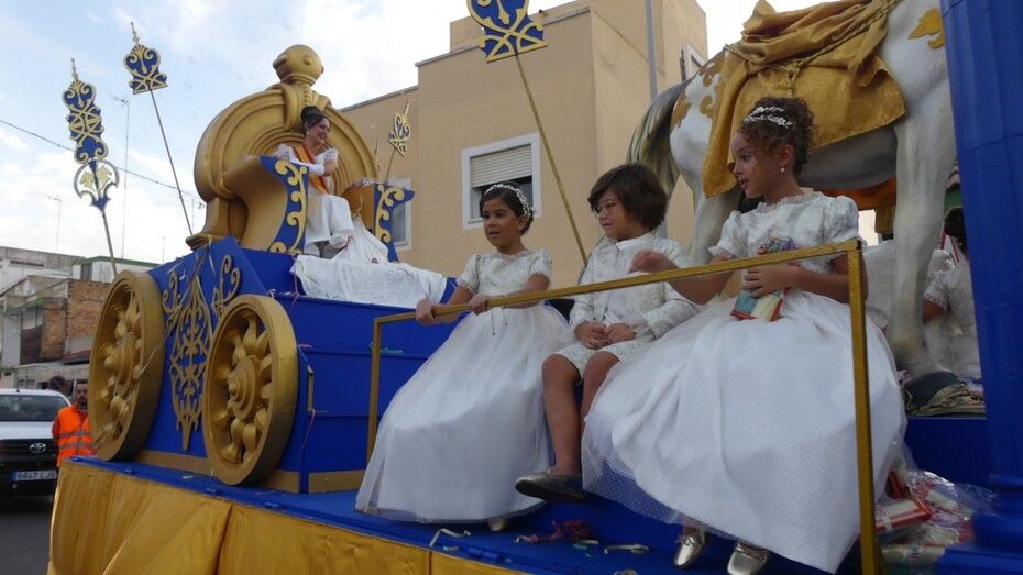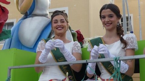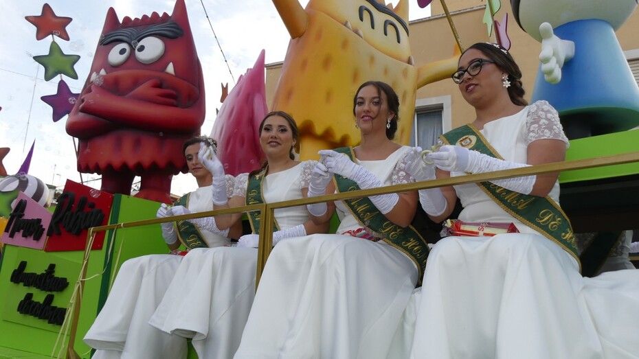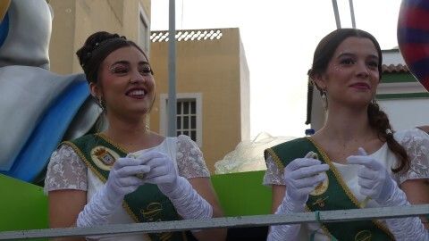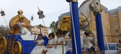 Los ciudadanos tenían ganas de que la cabalgata no les defraudara y en parte, ha cumplido porque han sido muchos los que han salido a la calle y han disfrutado con el cortejo que estaba animado. Las damas del Rosario se han mostrado participativas e incluso bailando lo poco que les permite estar sentadas, han lanzado serpentinas y han saludado a sus paisanos. Gracias a que las carrozas en las que iban llevaban música incorporada y han sido temas comerciales muy reconocibles para todos, el público también se ha metido algo más en el ambiente.