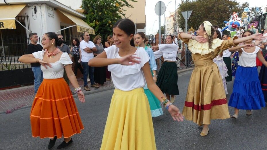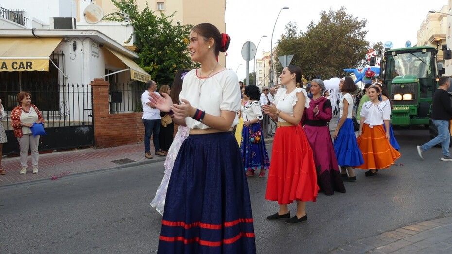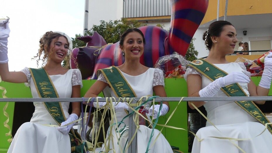 La dama mayor del Rosario, Natalia Macías Domínguez, y su corte de honor, compuesta por 21 damas del Rosario y sus seis pajes, han presidido en la tarde de este domingo, tercer día de fiestas patronales, la cabalgata con la que prácticamente se pone fin a la programación de actos lúdicos en honor a Nuestra Señora del Rosario.