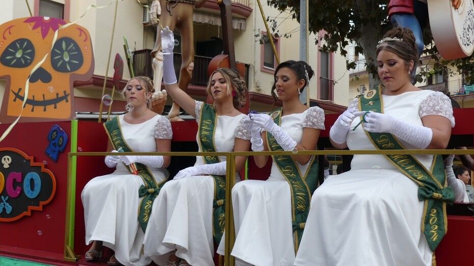 Este año, la delegación de Fiestas ha apostado por una nueva decoración para las cuatro carrozas en las que iban repartidas las damas del Rosario, -una para la dama mayor y sus pajes, y otras tres para el resto de jóvenes-, que han lucido bien en la calle, incluso cuando ha anochecido y se han iluminado.
