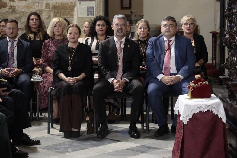 En una iglesia mayor con bastante público, se ha desarrollado esta misa solemne que ha estado oficiada por el obispo de Asidonia Jerez, José Rico Pavés, y ha contado con el acompañamiento musical del orfeón 'Virgen de la Escalera' de Rota. Una cita a la que han acudido miembros de la Corporación municipal con el alcalde de Rota, Javier Ruiz a la cabeza, miembros del Consejo Local de Hermandades y Cofradías de la VIlla, el pregonero del Rosario, Manuel Gallero Caballero, autoridades civiles y militares, las damas del Rosario, el exaltador de las fiestas patronales, Manuel García Sánchez, miembros de las hermandades locales y devotos.