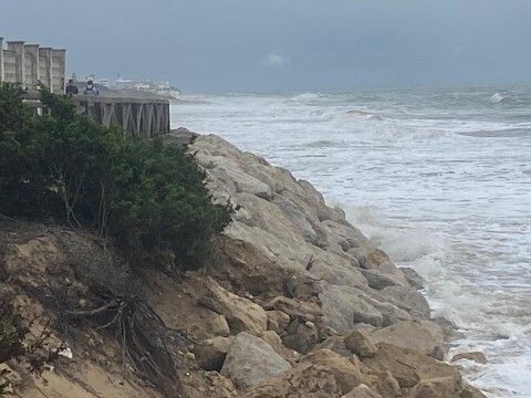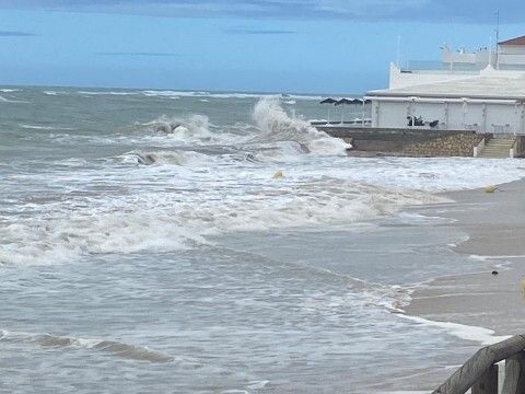 Aunque de momento, según han trasladado a este medio desde la delegación de Playas del Ayuntamiento de Rota, no se han detectado desperfectos en infraestructuras, están atentos por si las grandes mareas causan alguno y pudieran poner el peligro la estabilidad de alguna bajada de madera. Lo que se hizo esta mañana fue retirar las extensiones de lona azul que prolongan la pasarela de madera hasta unos metros más cercanos a la orilla, para facilitar el paso a personas con movilidad reducida, pero en puntos como Virgen del Mar, por ejemplo, las olas comienzan a tocar la pasarela de madera.