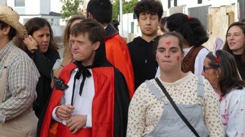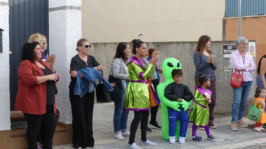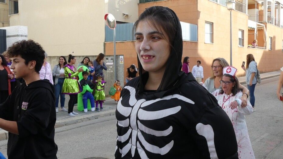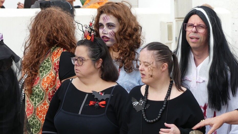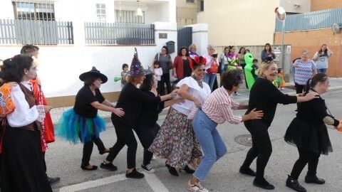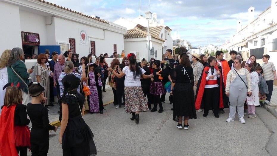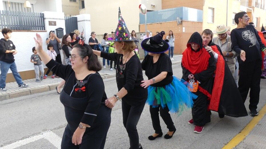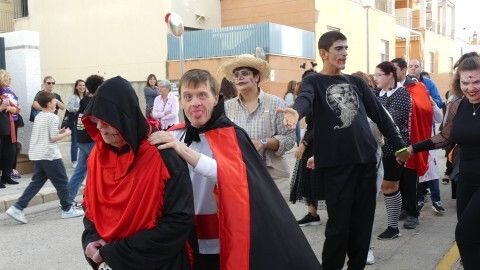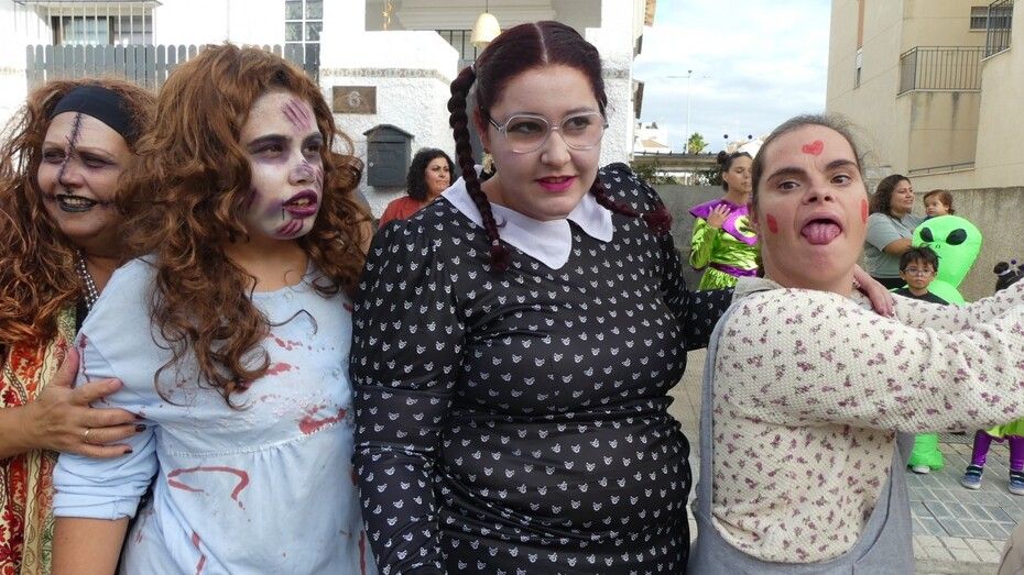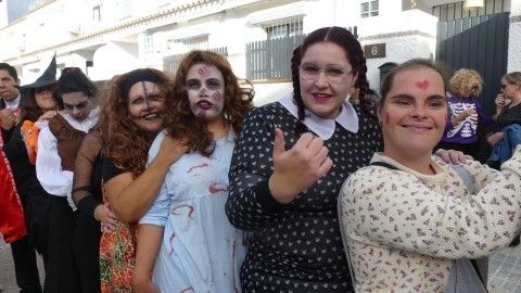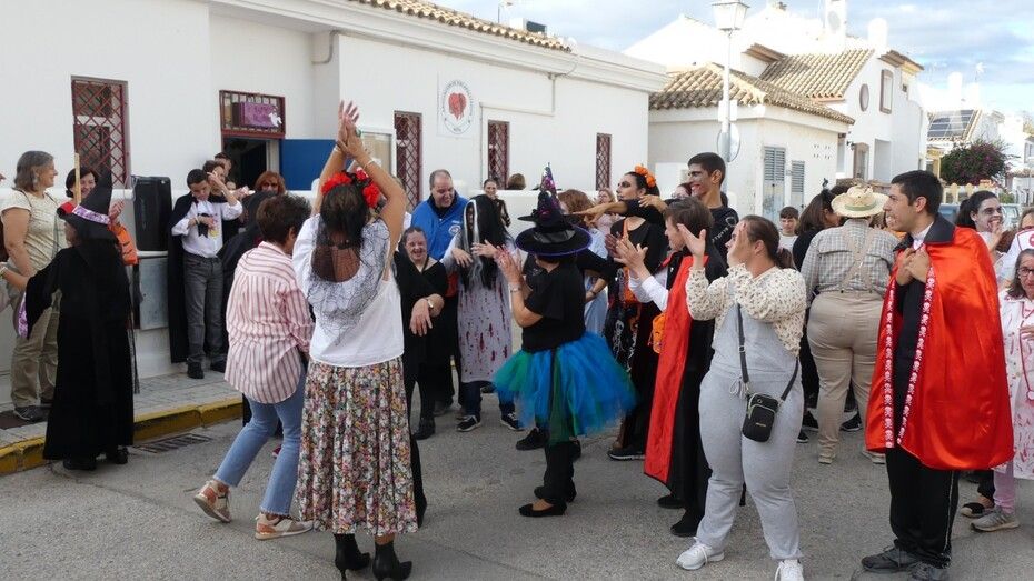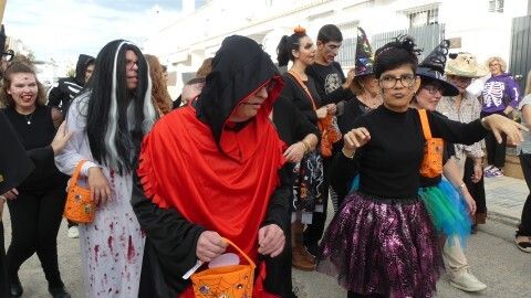 El particular Halloween que propone la Asociación de Personas con Discapacidad, con los alumnos del colegio de la Base como invitados contó además con un baile en plena calle del mítico tema 'Thriller' de Michael Jackson donde los chicos de la entidad y algunas madres y monitoras hicieron disfrutar al resto.
