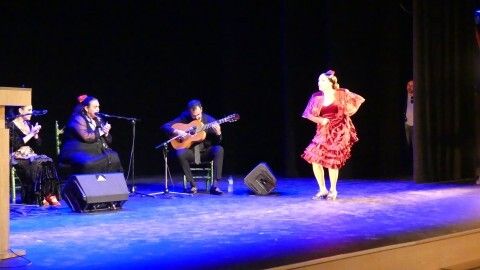 El cante y el baile dieron paso a la segunda parte del V Encuentro Provincial de Peñas Flamencas de Cádiz, con Laura Pirri al baile, a la que el presentador, Manuel Moreno, se refirió con palabras de reconocimiento por su larga trayectoria como bailaora y coreógrafa, asegurando que era una profesional de los pies a la cabeza y convencido de que haría pasar un buen rato con el cante de Ana de los Reyes y Marga de Jerez, y el toque de Ismael Heredia.