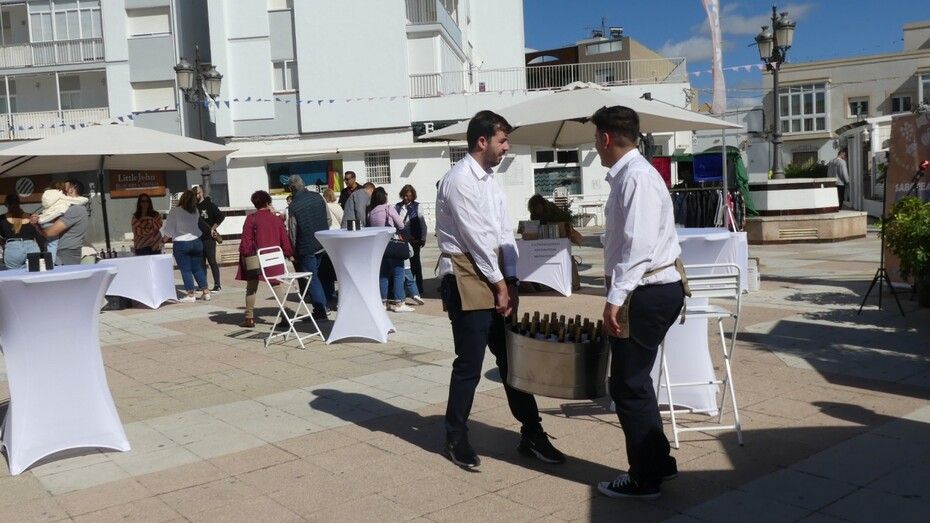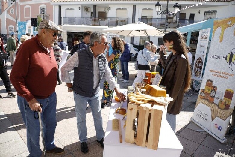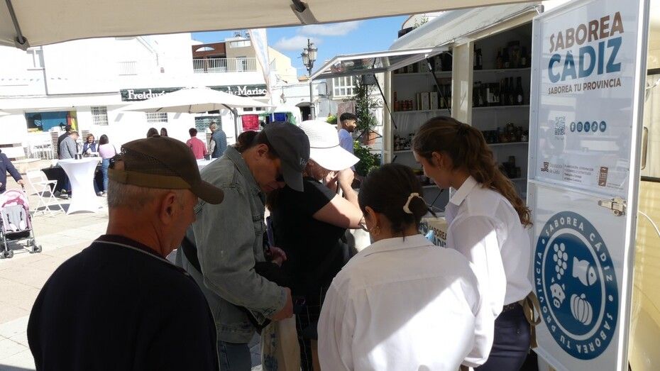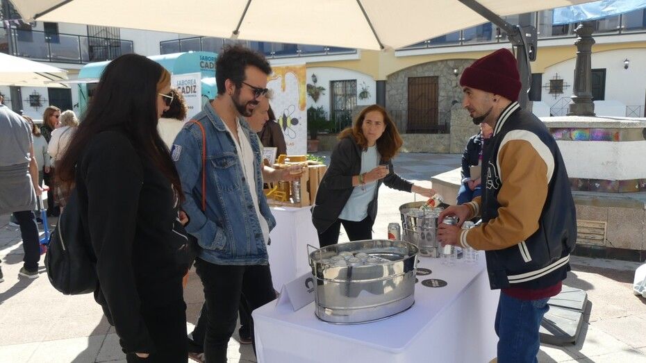 En la plaza de La Cantera, además de poder visitar los ocho stands de productores locales participantes más algunos representantes de la provincia de Cádiz, ha habido un 'showcooking' que ha permitido a los asistentes poder ver en directo la elaboración de un plato. A ello se le sumarán a lo largo del día algunos talleres y degustaciones gratuitas.